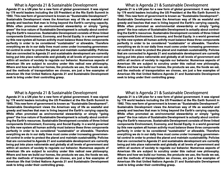 Click Image for Printable PDF Version - Agenda 21 One Minute Intoduction Cards 4x Per Sheet